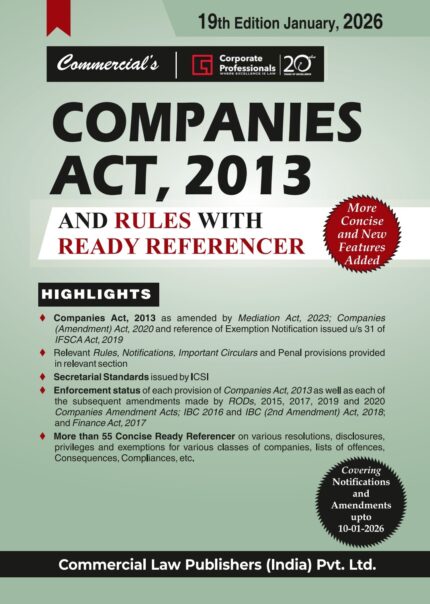 COMPANIES ACT COMMENTARY- COMPANIES ACT 2013 AND RULES & FORMS WITH CONCISE COMMENTARY AND REREFENCER UPDATED 10/01/2026 BY CORPORATE PROFESSIONALS