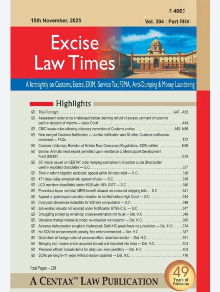 EXCISE LAW TIMES 2026- Print Journal for 2026