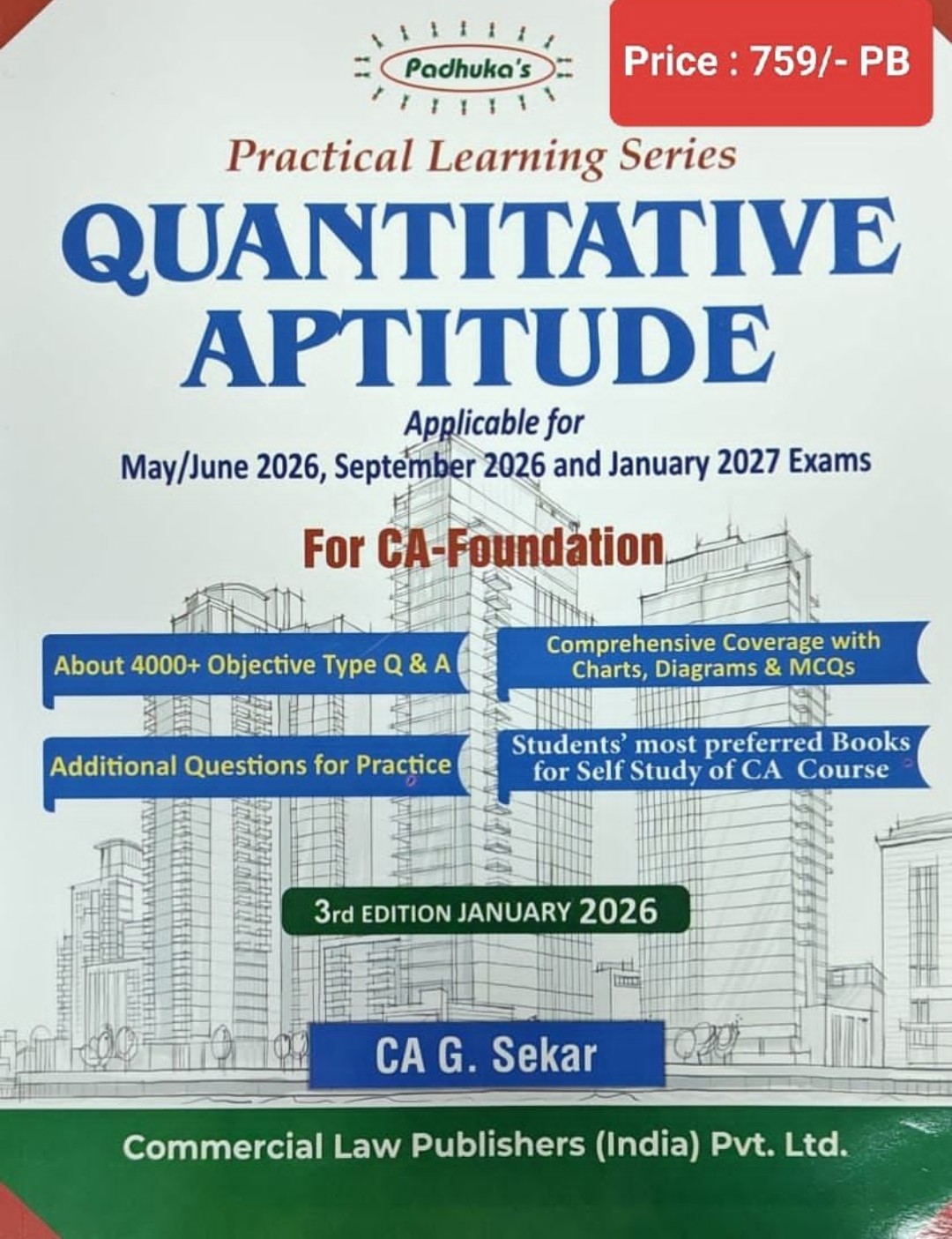 Home STUDENTS CA CA Foundation QUANTITATIVE APTITUDE -CA FOUNDATION-BY CA G SEKAR -May / June 2026 Sept 2026 & Jan 2027 Exams EXAMS
