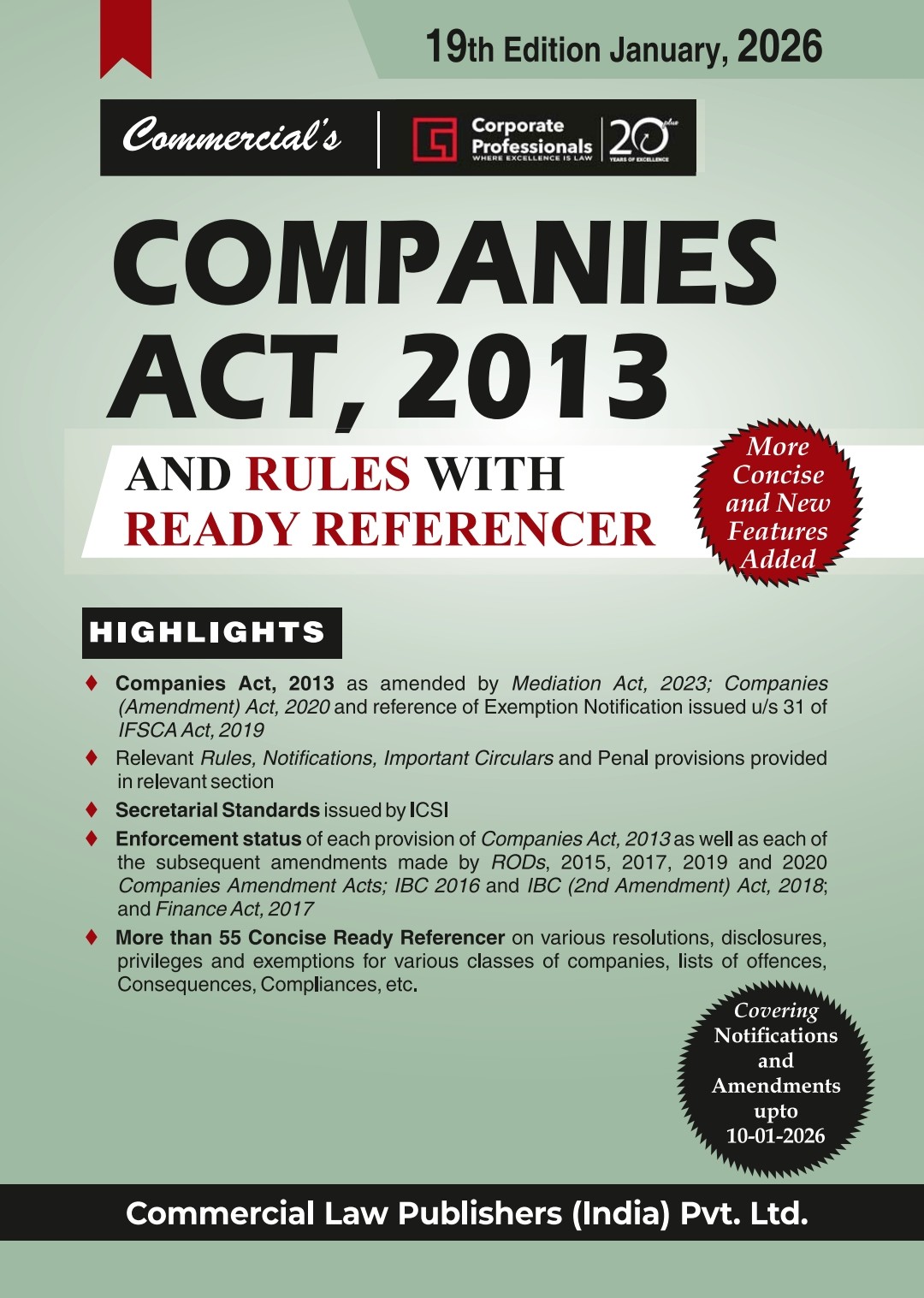 Home PROFESSIONAL Company Law COMPANIES ACT COMMENTARY- COMPANIES ACT 2013 AND RULES & FORMS WITH CONCISE COMMENTARY AND REREFENCER UPDATED 10/01/2026 BY CORPORATE PROFESSIONALS