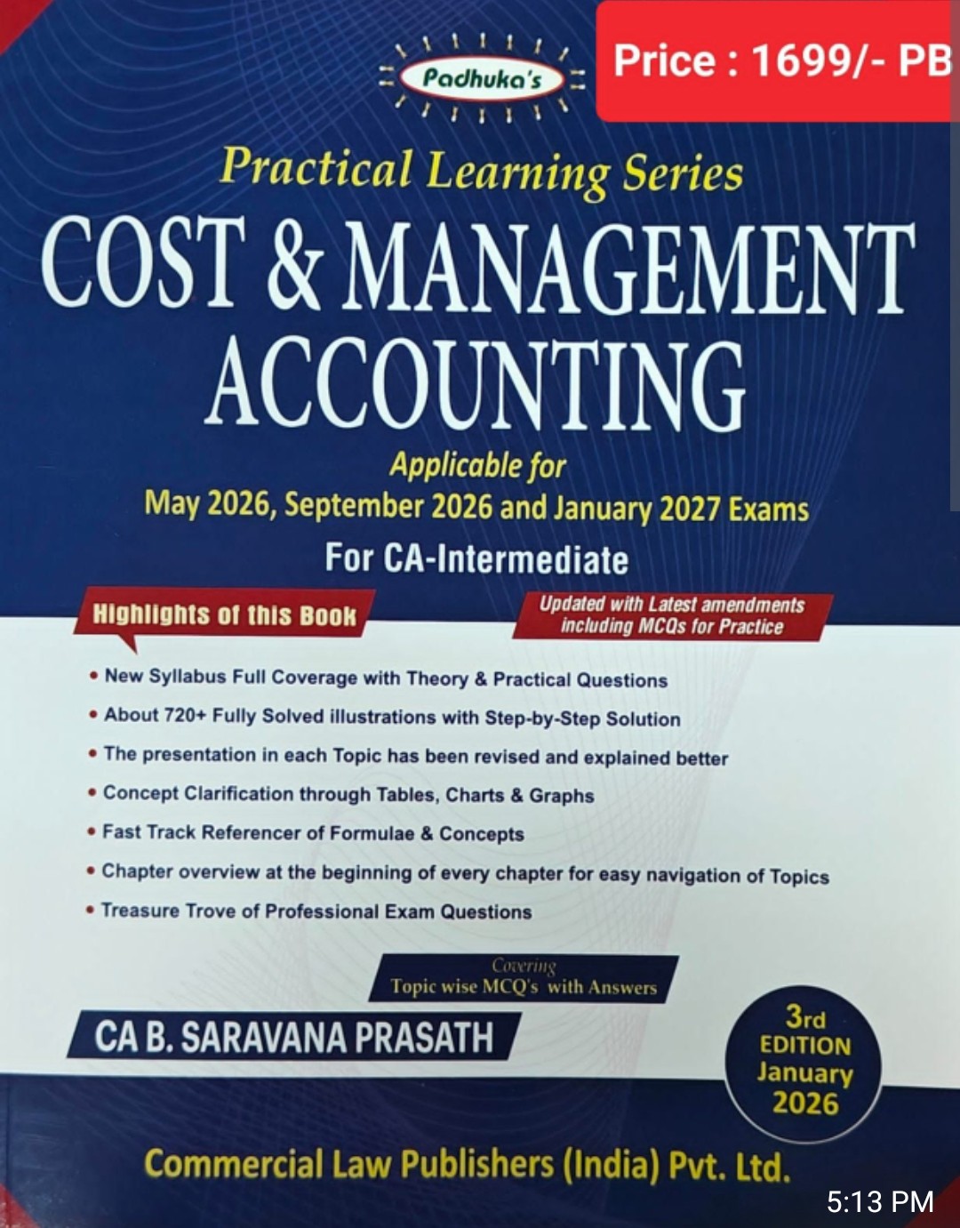 COST & MANAGEMENT ACCOUNTING -CA INTERMEDIATE-Applicable for MAY-SEPT 2026 & JAN 2027 EXAMS BY CA SARAVANA PRASANTH