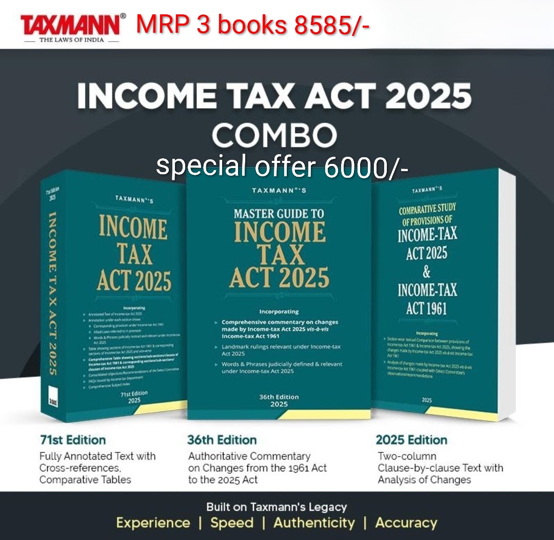 Be the first to review “INCOME TAX ACT 2025 COMBO-Income Tax Act 2025 +Maser Guide to Income Tax Act 2025+Comparative Study of IncomeTaxAct202 & 1961” Cancel reply