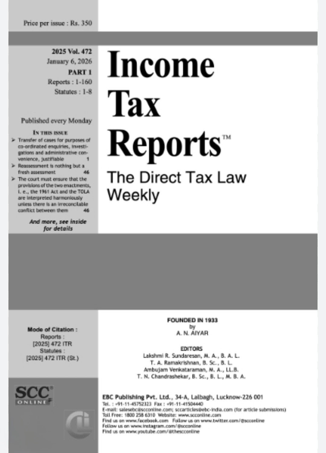 Home SUBSCRIPTIONS Printed Journals INCOME TAX REPORTS – WEEKLY PRINT JOURNAL 2026