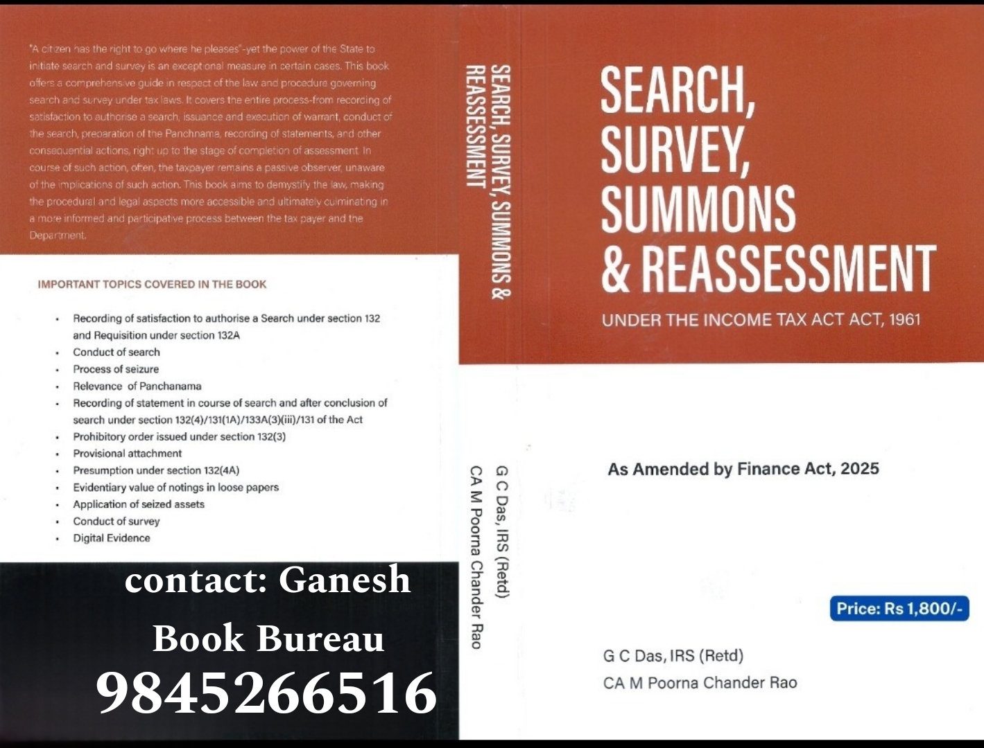 SEARCH, SURVEY, SUMMONS & REASSESSMENT Under The Income Tax Act 1961- As Amended by Finance Act, 2025 by G C Das, IRS (Retd) & CA M POORNA CHANDER RAO